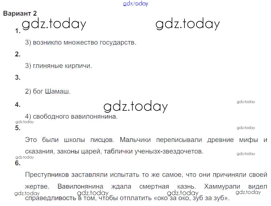 На страницах сайта gdz.today вы найдете учебный и вспомогательный материал, направленный на улучшения знаний школьной программы. ГДЗ - онлайн мир знаний Проверочная работа-1 Решение к главе 5. Западная Азия в древности Вариант №2 Проверочным и контрольным работам по Истории для 5 класса Крючкова  Просвещение  2015