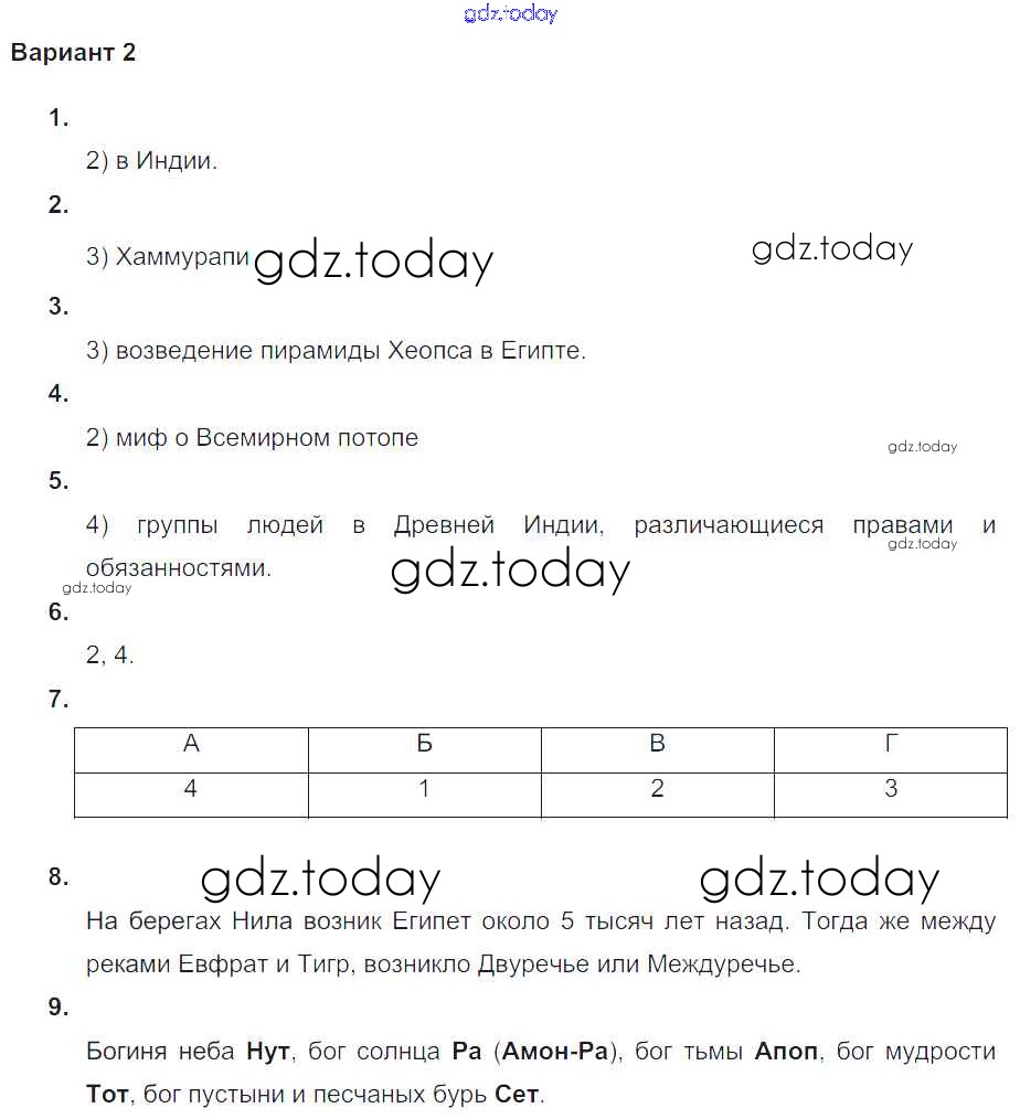 На страницах сайта gdz.today вы найдете учебный и вспомогательный материал, направленный на улучшения знаний школьной программы. ГДЗ - онлайн мир знаний Итоговая контрольная работа по теме Древний Восток Решение к главе 6. Индия и Китай в древности. Древняя Греция Вариант №2 Проверочным и контрольным работам по Истории для 5 класса Крючкова  Просвещение  2015