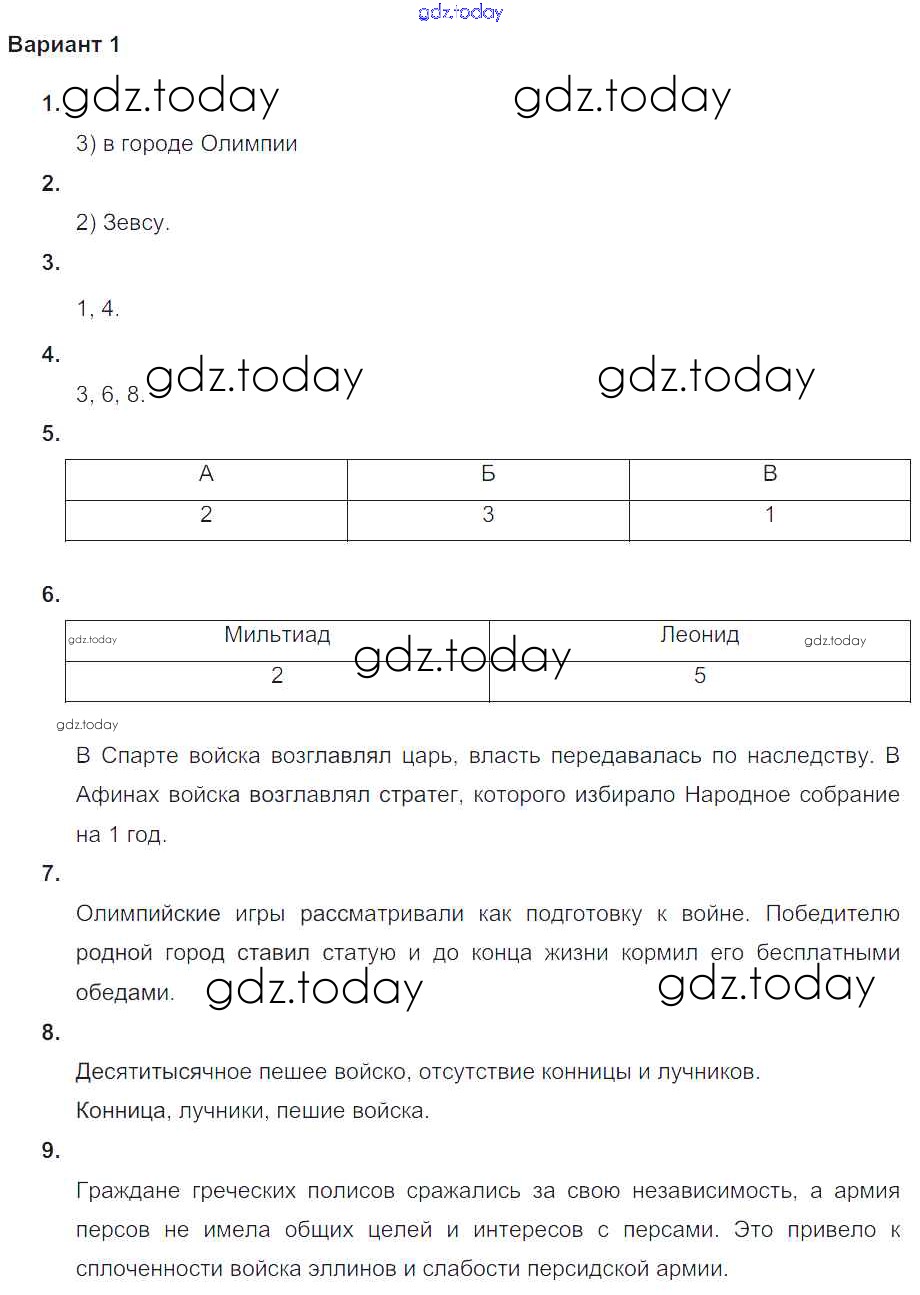 На страницах сайта gdz.today вы найдете учебный и вспомогательный материал, направленный на улучшения знаний школьной программы. ГДЗ - онлайн мир знаний Проверочная работа-3 Решение к главе 8. Полисы Греции и их борьба с персидским нашествием Вариант №1 Проверочным и контрольным работам по Истории для 5 класса Крючкова  Просвещение  2015
