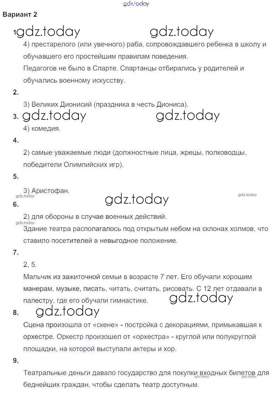 На страницах сайта gdz.today вы найдете учебный и вспомогательный материал, направленный на улучшения знаний школьной программы. ГДЗ - онлайн мир знаний Проверочная работа-2 Решение к главе 9. Возвышение Афин в V (5-м) веке до н. э. и расцвет демократии Вариант №2 Проверочным и контрольным работам по Истории для 5 класса Крючкова  Просвещение  2015