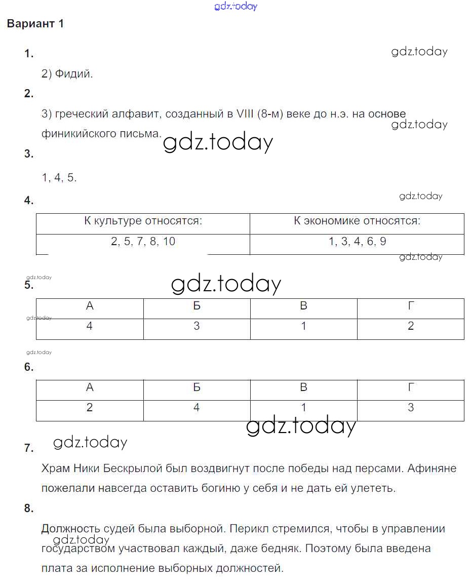 Ответы к Итоговая контрольная работа к главе Возвышение Афин в V веке до н. э. Решение к главе 9. Возвышение Афин в V (5-м) веке до н. э. и расцвет демократии Вариант №1 Проверочным и контрольным работам по Истории для 5 класса Крючкова  Просвещение  2015