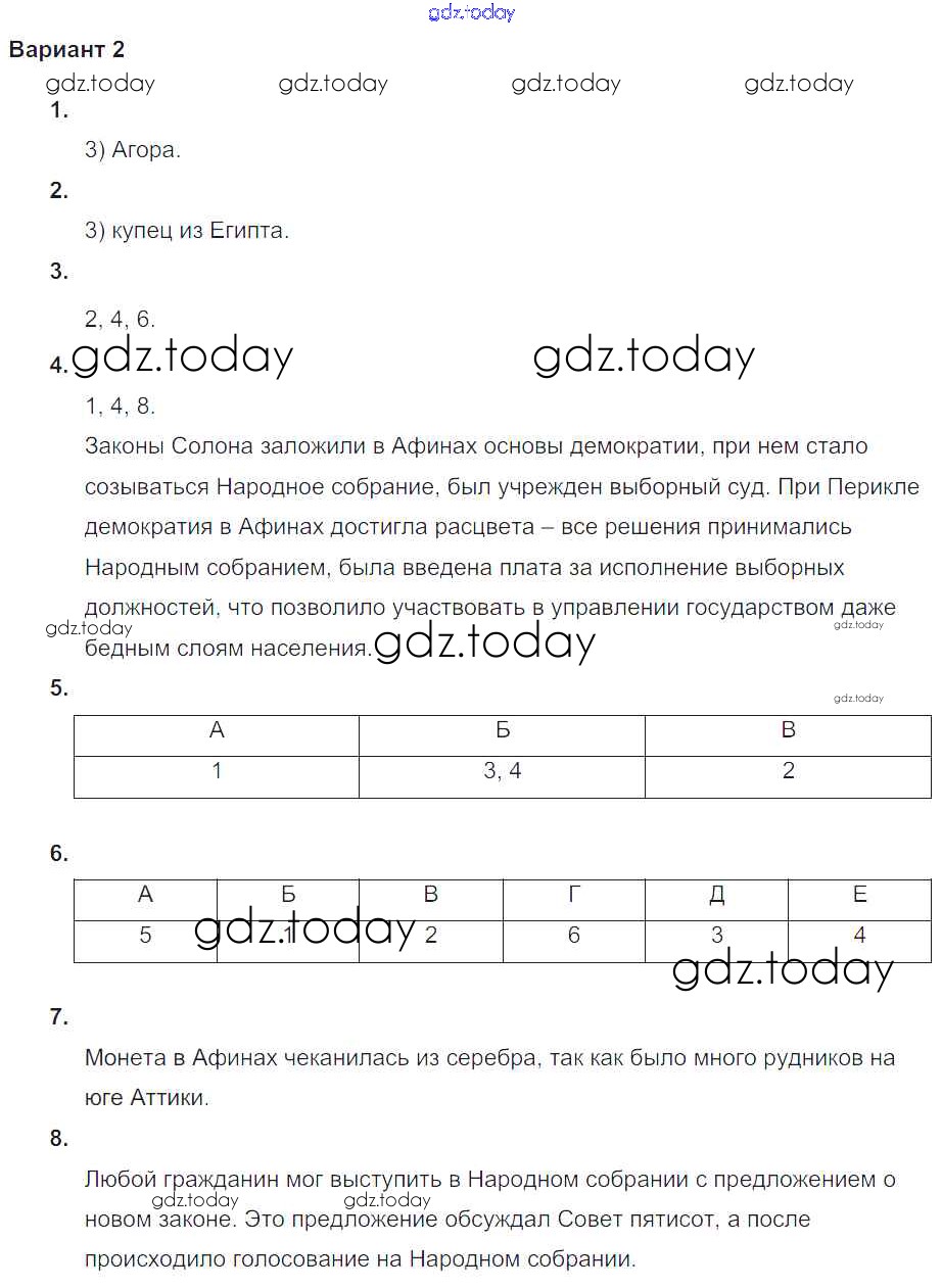 Ответы к Итоговая контрольная работа к главе Возвышение Афин в V веке до н. э. Решение к главе 9. Возвышение Афин в V (5-м) веке до н. э. и расцвет демократии Вариант №2 Проверочным и контрольным работам по Истории для 5 класса Крючкова  Просвещение  2015