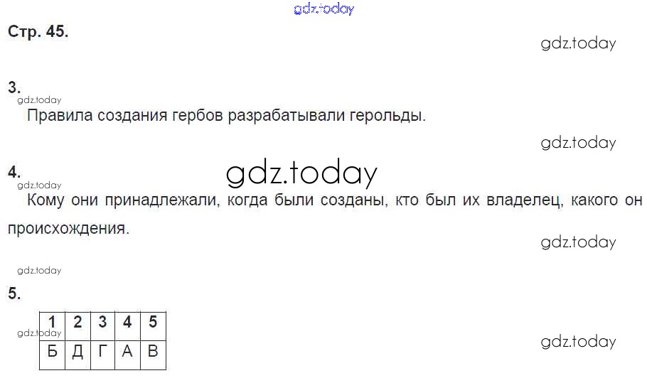 На страницах сайта gdz.today вы найдете учебный и вспомогательный материал, направленный на улучшения знаний школьной программы. ГДЗ - онлайн мир знаний Страницы (решение)  45 Рабочей тетради по Истории для 5 класса Майков  Вентана-граф Алгоритм успеха 2015