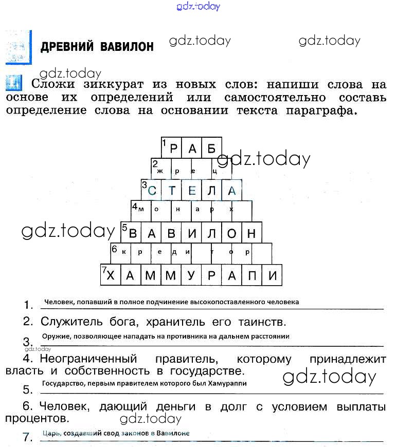 На страницах сайта gdz.today вы найдете учебный и вспомогательный материал, направленный на улучшения знаний школьной программы. ГДЗ - онлайн мир знаний Решение к параграфам  11 Рабочей тетради по Истории для 5 класса Уколова  Просвещение  2012