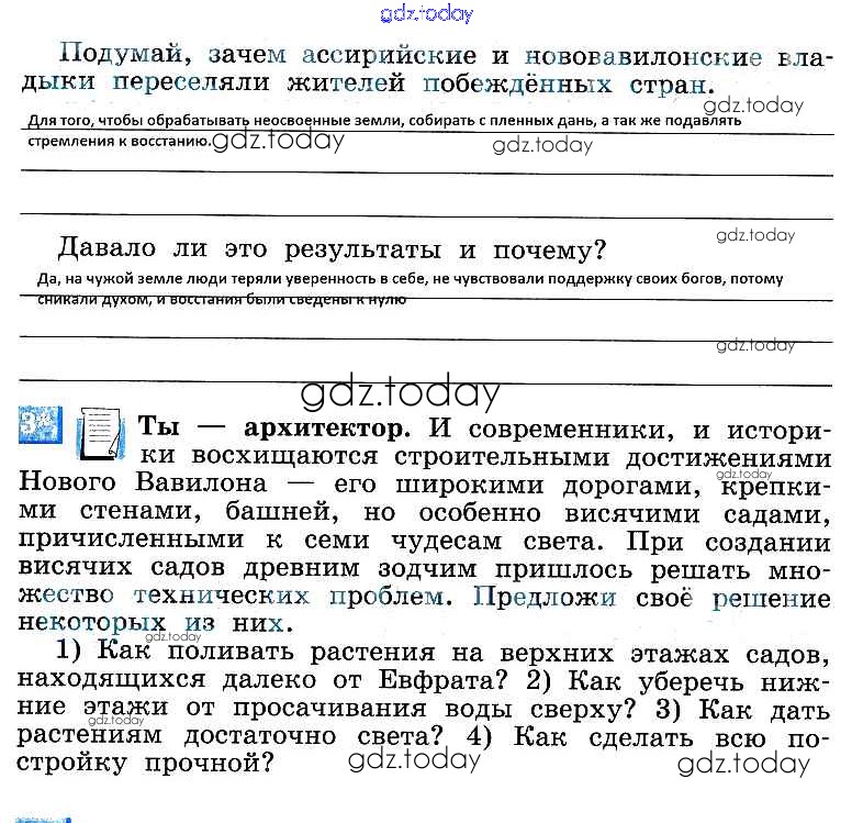 На страницах сайта gdz.today вы найдете учебный и вспомогательный материал, направленный на улучшения знаний школьной программы. ГДЗ - онлайн мир знаний Решение к параграфам  20 Рабочей тетради по Истории для 5 класса Уколова  Просвещение  2012