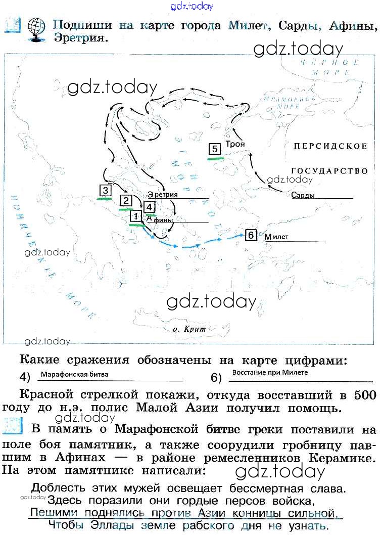 На страницах сайта gdz.today вы найдете учебный и вспомогательный материал, направленный на улучшения знаний школьной программы. ГДЗ - онлайн мир знаний Решение к параграфам  35 Рабочей тетради по Истории для 5 класса Уколова  Просвещение  2012