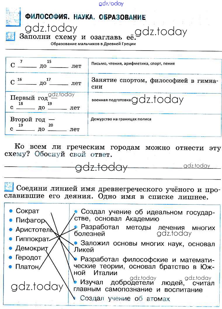 На страницах сайта gdz.today вы найдете учебный и вспомогательный материал, направленный на улучшения знаний школьной программы. ГДЗ - онлайн мир знаний Решение к параграфам  39 Рабочей тетради по Истории для 5 класса Уколова  Просвещение  2012