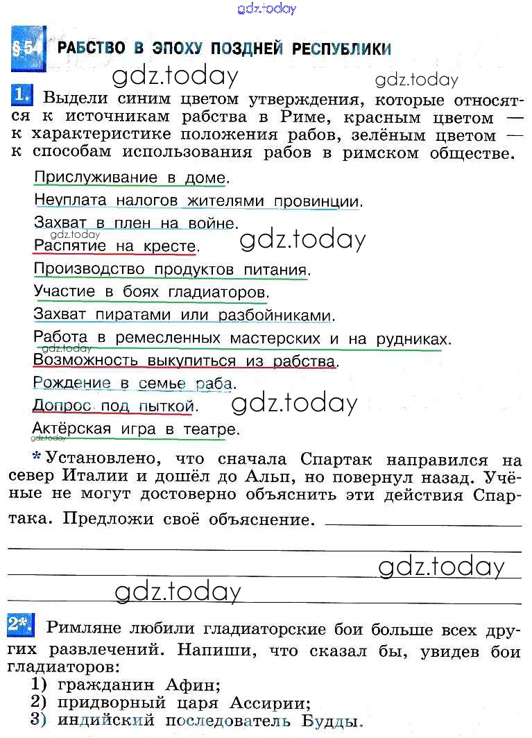 На страницах сайта gdz.today вы найдете учебный и вспомогательный материал, направленный на улучшения знаний школьной программы. ГДЗ - онлайн мир знаний Решение к параграфам  54 Рабочей тетради по Истории для 5 класса Уколова  Просвещение  2012