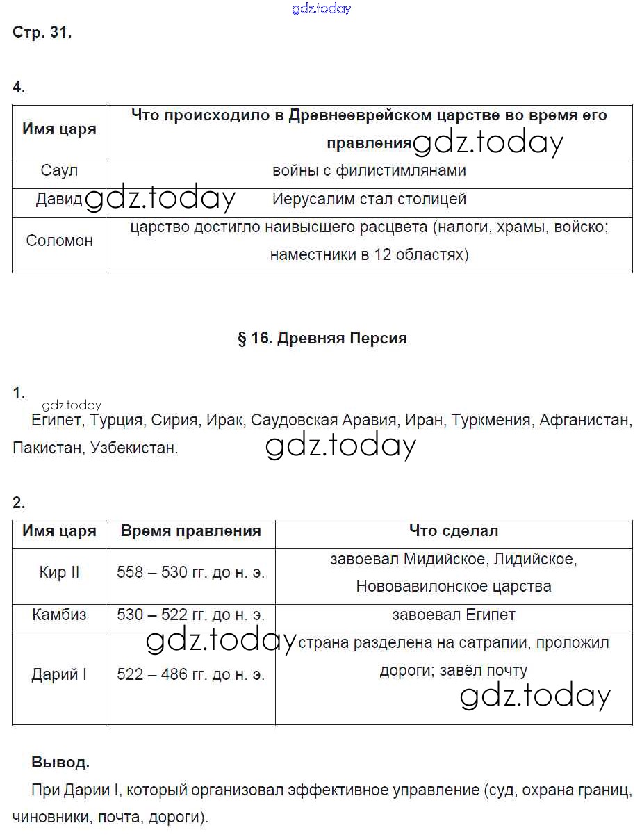 На страницах сайта gdz.today вы найдете учебный и вспомогательный материал, направленный на улучшения знаний школьной программы. ГДЗ - онлайн мир знаний Страницы (решение)  31 Рабочей тетради по Истории для 5 класса Ванина, Данилова  Вентана-граф  2015