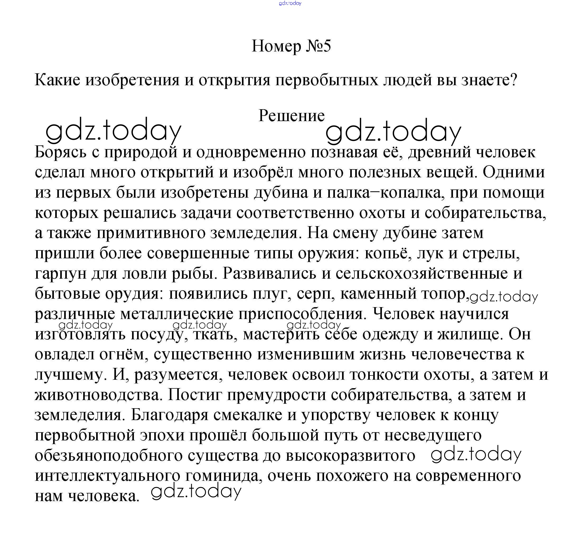 На страницах сайта gdz.today вы найдете учебный и вспомогательный материал, направленный на улучшения знаний школьной программы. ГДЗ - онлайн мир знаний Вопросы и задания к разделу «Жизнь первобытных людей» 5 Учебнику по Истории для 5 класса Вигасин, Годер Просвещение 2010