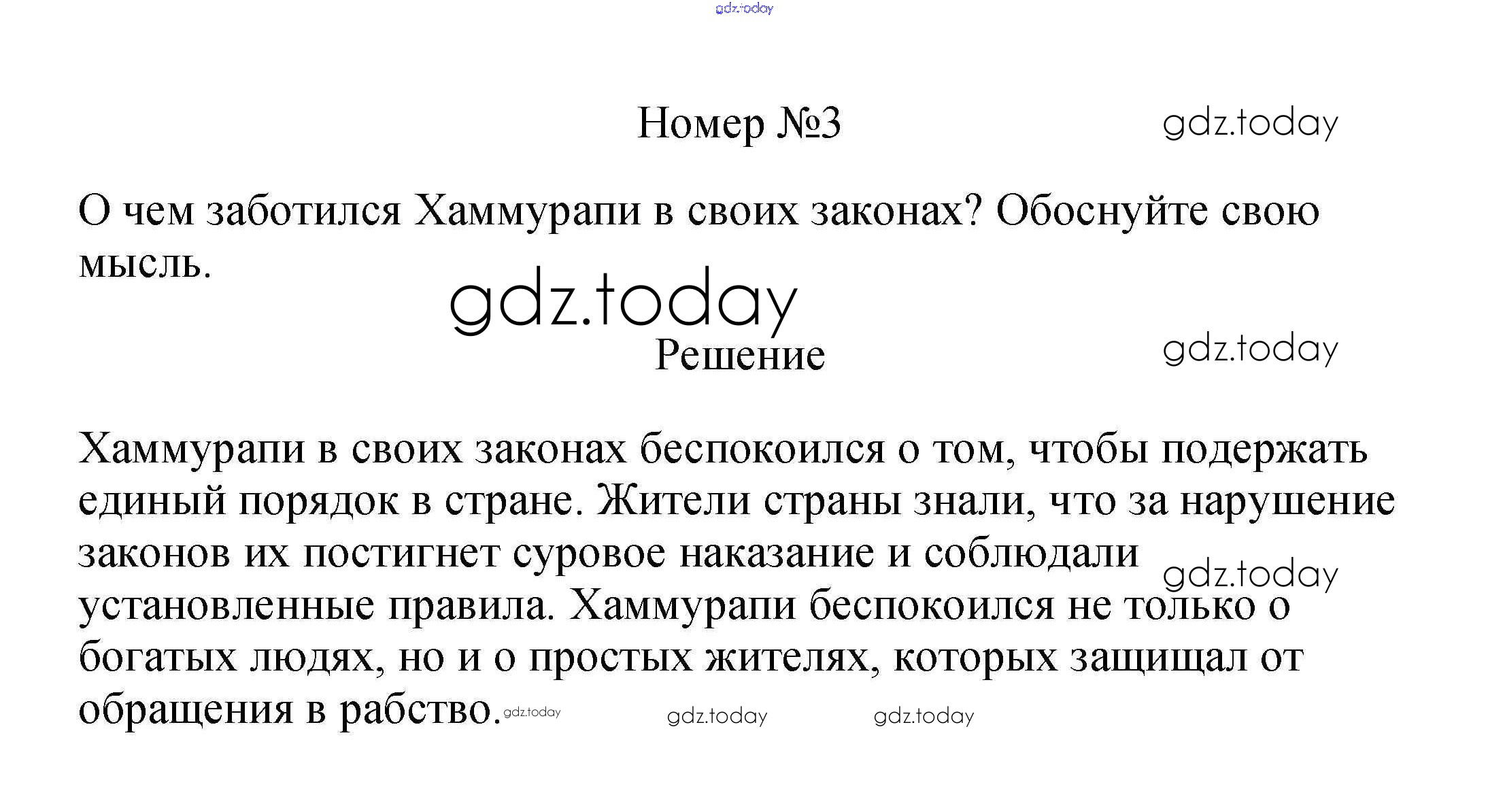 На страницах сайта gdz.today вы найдете учебный и вспомогательный материал, направленный на улучшения знаний школьной программы. ГДЗ - онлайн мир знаний Вопросы после параграф §14. Вавилонский царь Хаммурапи и его законы 3 Учебнику по Истории для 5 класса Вигасин, Годер Просвещение 2010