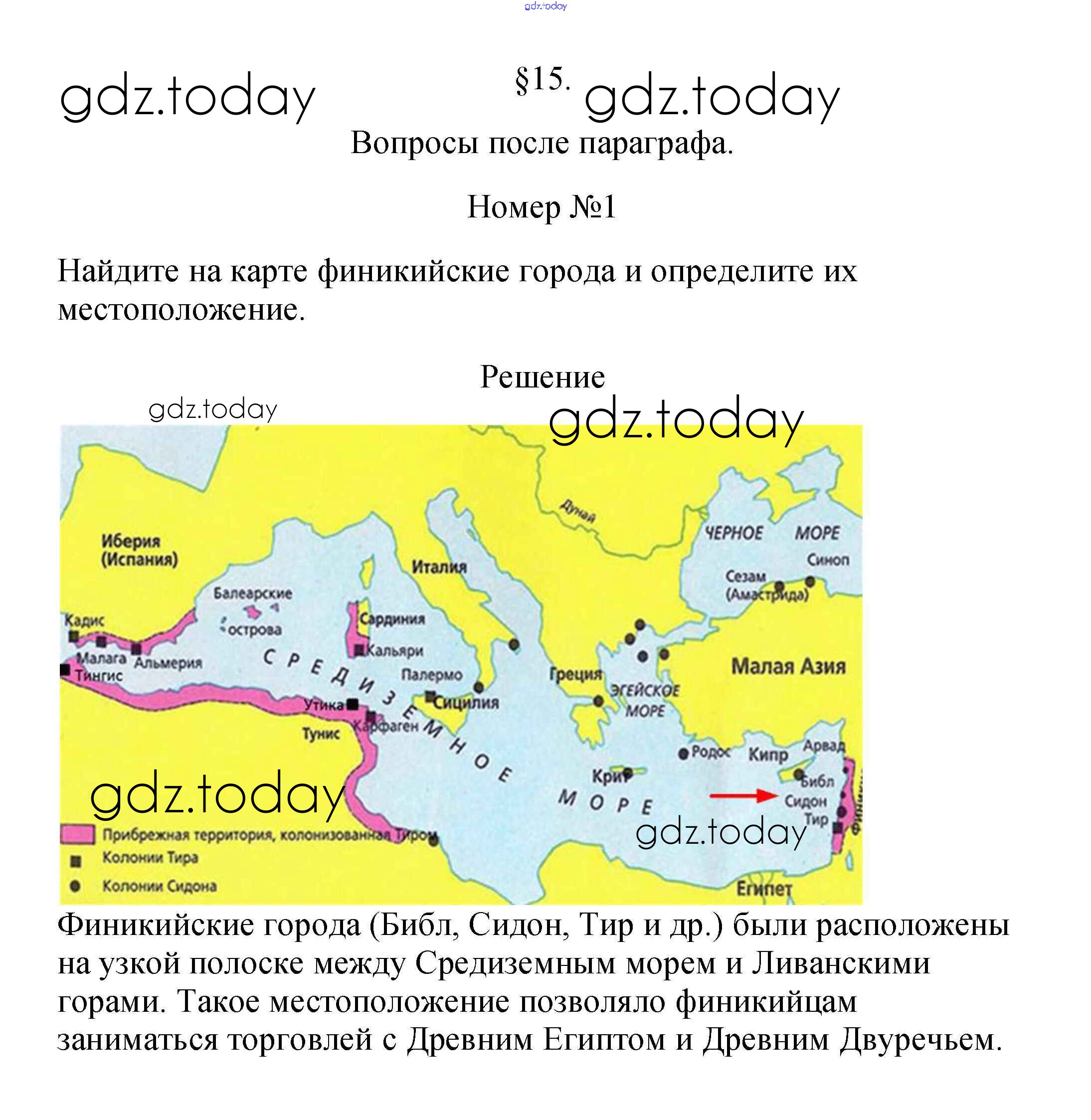На страницах сайта gdz.today вы найдете учебный и вспомогательный материал, направленный на улучшения знаний школьной программы. ГДЗ - онлайн мир знаний §15. Финикийские мореплаватели 1 Учебнику по Истории для 5 класса Вигасин, Годер Просвещение 2010