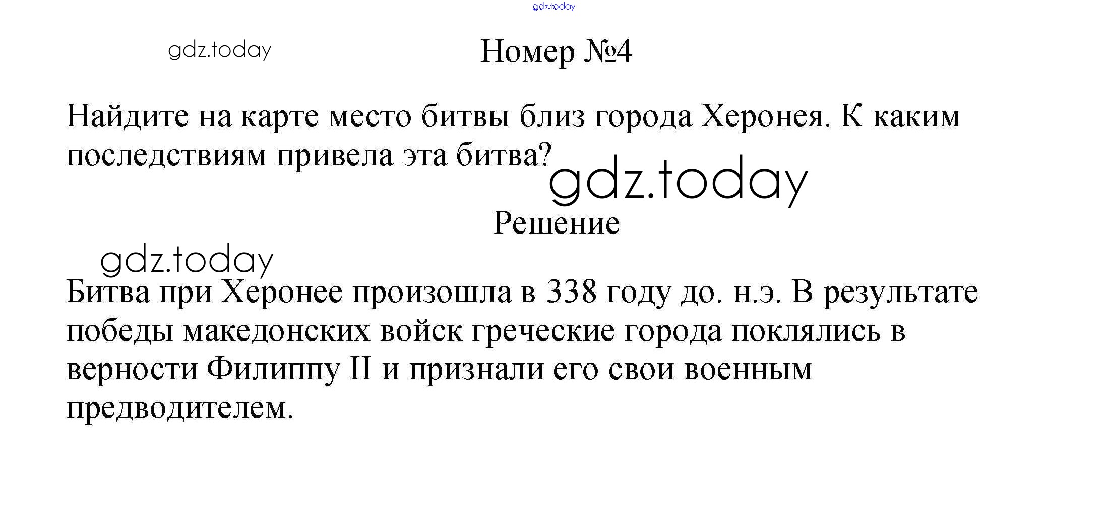 На страницах сайта gdz.today вы найдете учебный и вспомогательный материал, направленный на улучшения знаний школьной программы. ГДЗ - онлайн мир знаний §41. Города Эллады подчиняются Македонии 4 Учебнику по Истории для 5 класса Вигасин, Годер Просвещение 2010