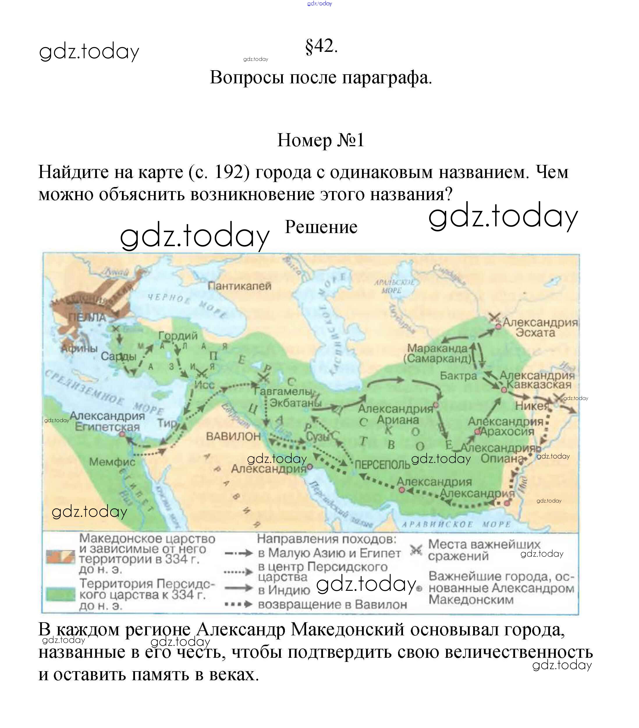 На страницах сайта gdz.today вы найдете учебный и вспомогательный материал, направленный на улучшения знаний школьной программы. ГДЗ - онлайн мир знаний §42. Поход Александра Македонского на Восток 1 Учебнику по Истории для 5 класса Вигасин, Годер Просвещение 2010