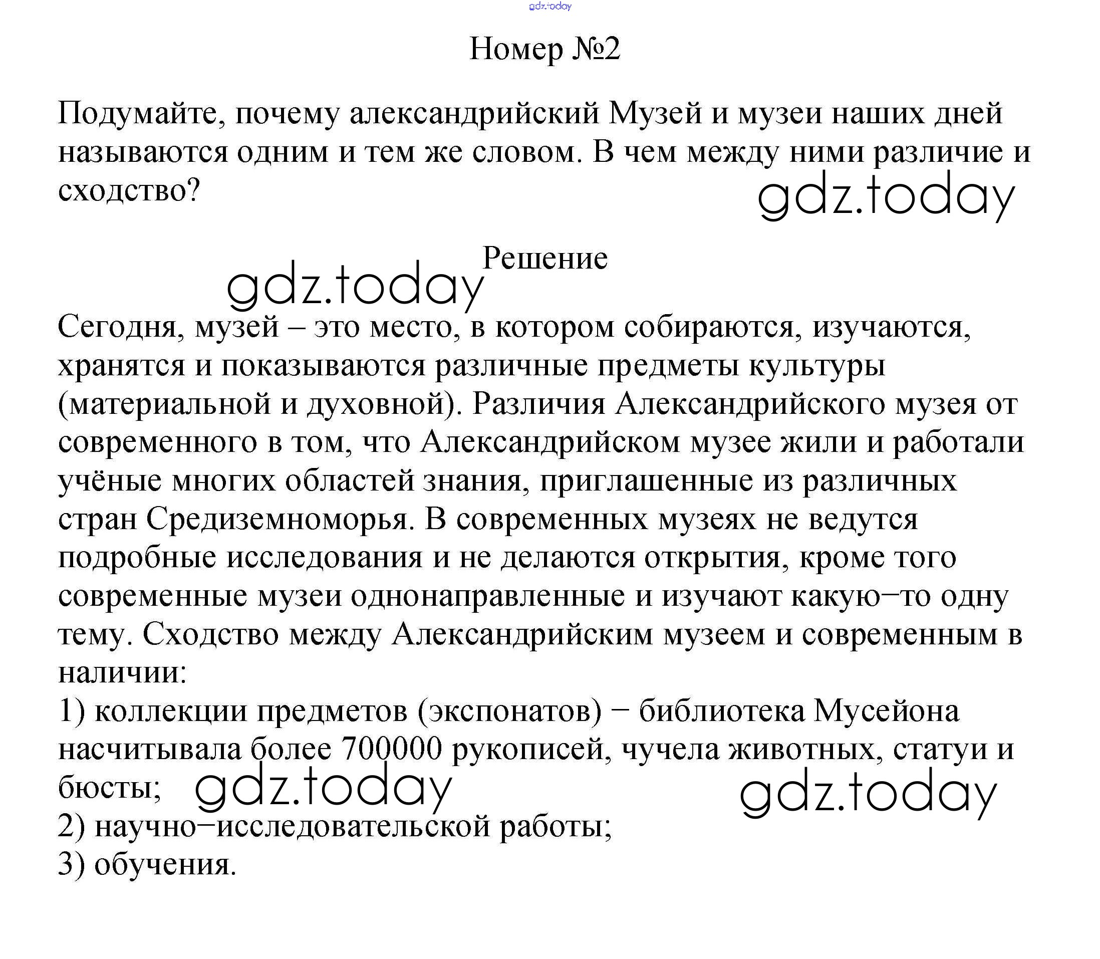 На страницах сайта gdz.today вы найдете учебный и вспомогательный материал, направленный на улучшения знаний школьной программы. ГДЗ - онлайн мир знаний §43. В Александрии Египетской 2 Учебнику по Истории для 5 класса Вигасин, Годер Просвещение 2010