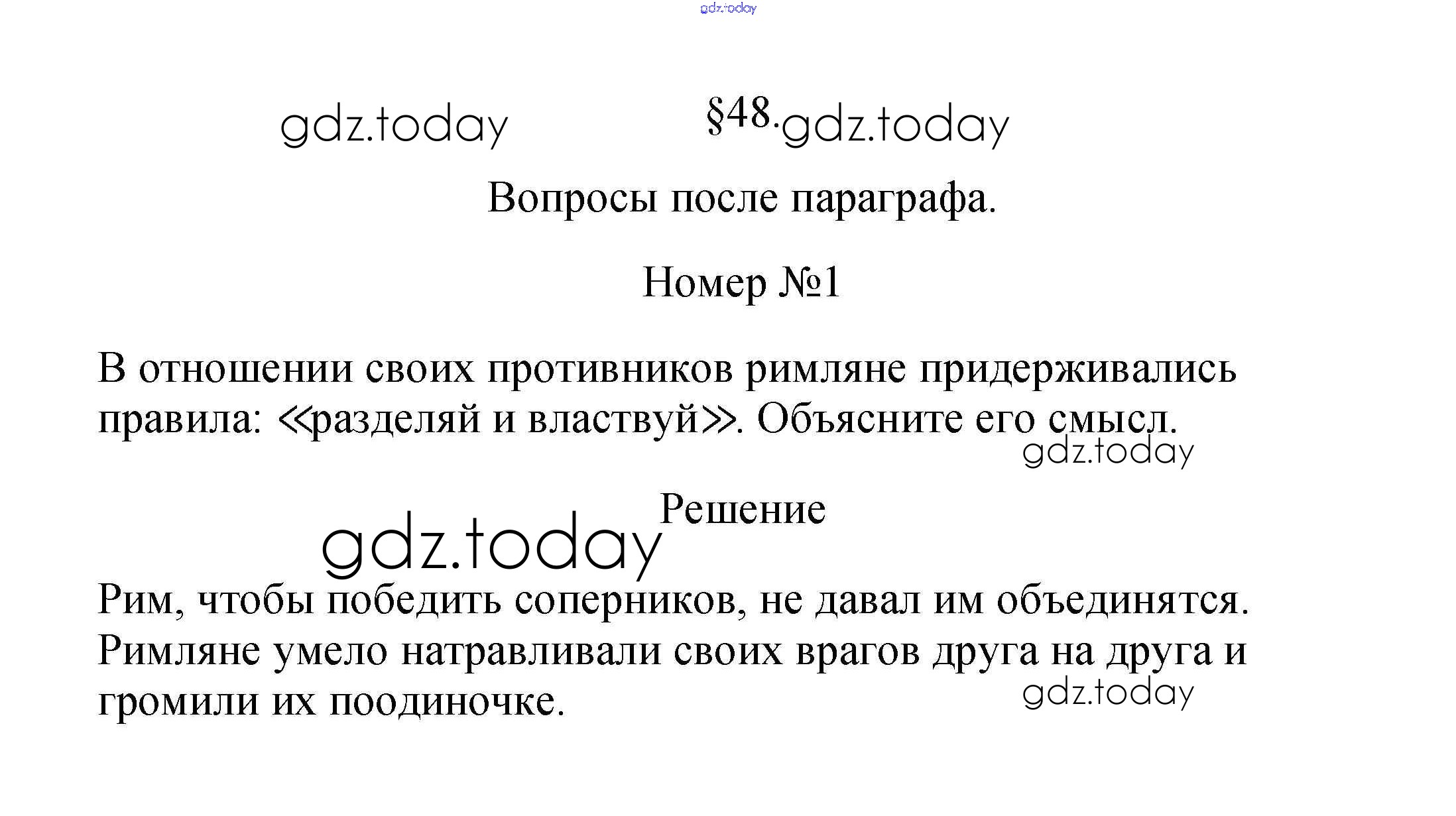На страницах сайта gdz.today вы найдете учебный и вспомогательный материал, направленный на улучшения знаний школьной программы. ГДЗ - онлайн мир знаний §48. Установление господства Рима во всем Средиземноморье 1 Учебнику по Истории для 5 класса Вигасин, Годер Просвещение 2010