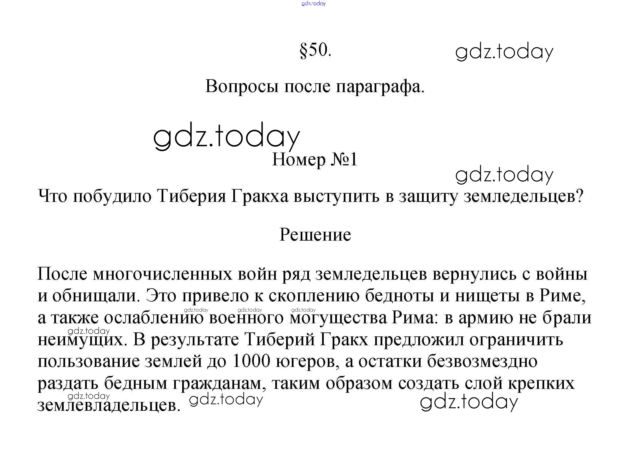 На страницах сайта gdz.today вы найдете учебный и вспомогательный материал, направленный на улучшения знаний школьной программы. ГДЗ - онлайн мир знаний §50. Земельный закон братьев Гракхов 1 Учебнику по Истории для 5 класса Вигасин, Годер Просвещение 2010
