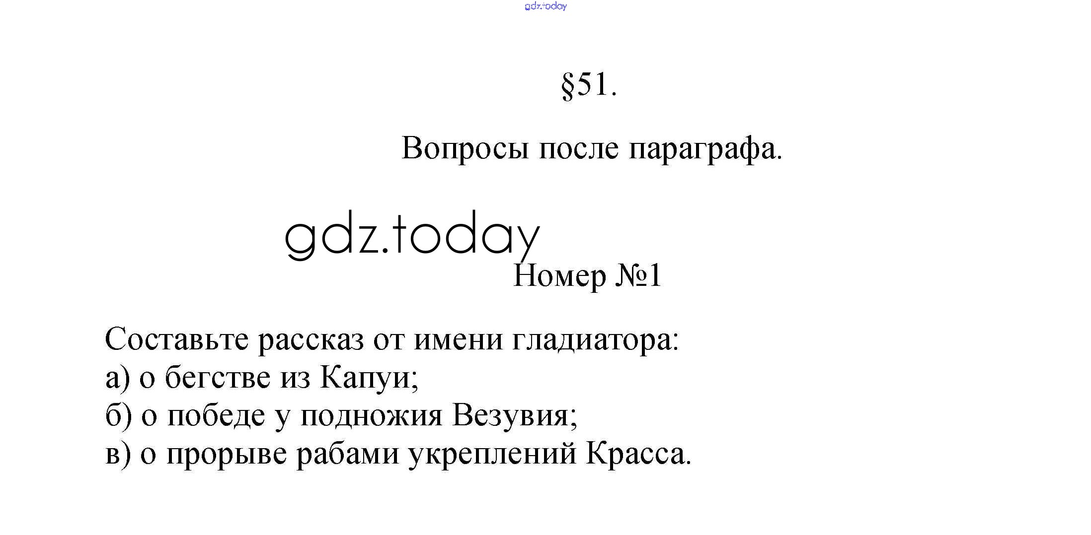 На страницах сайта gdz.today вы найдете учебный и вспомогательный материал, направленный на улучшения знаний школьной программы. ГДЗ - онлайн мир знаний §51. Восстание Спартака 1 Учебнику по Истории для 5 класса Вигасин, Годер Просвещение 2010
