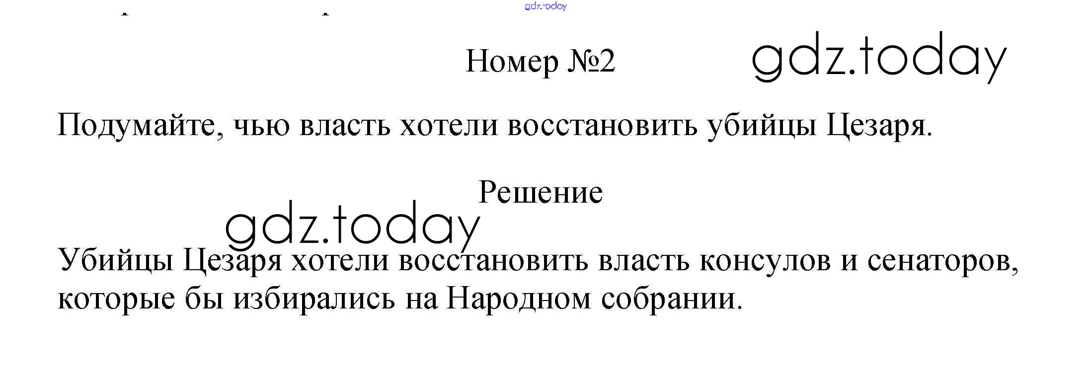На страницах сайта gdz.today вы найдете учебный и вспомогательный материал, направленный на улучшения знаний школьной программы. ГДЗ - онлайн мир знаний Вопросы после параграфа §52. Единовластие Цезаря 2 Учебнику по Истории для 5 класса Вигасин, Годер Просвещение 2010