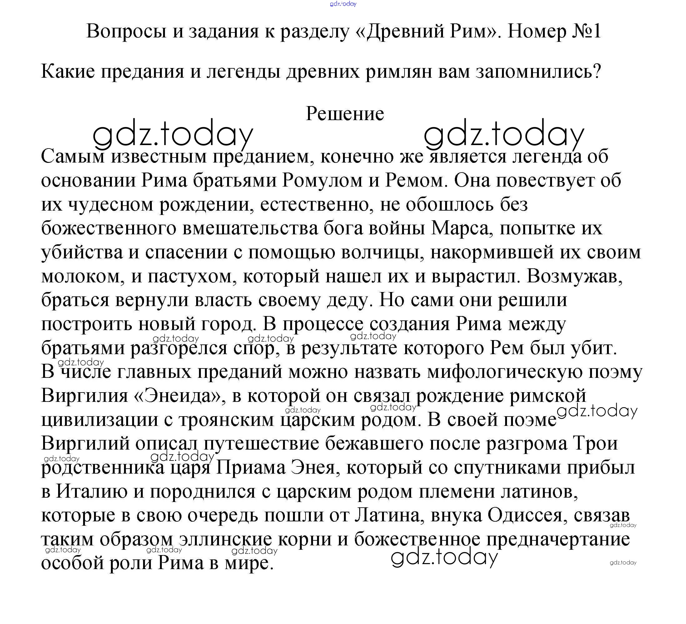 На страницах сайта gdz.today вы найдете учебный и вспомогательный материал, направленный на улучшения знаний школьной программы. ГДЗ - онлайн мир знаний Вопросы и задания к разделу «Древний Рим» 1 Учебнику по Истории для 5 класса Вигасин, Годер Просвещение 2010