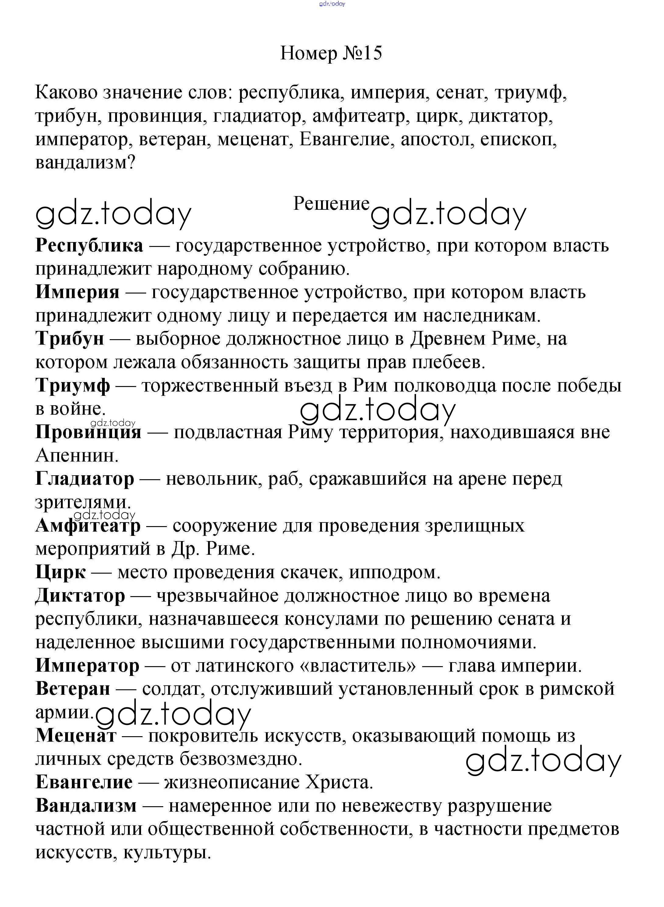 На страницах сайта gdz.today вы найдете учебный и вспомогательный материал, направленный на улучшения знаний школьной программы. ГДЗ - онлайн мир знаний Вопросы и задания к разделу «Древний Рим» 15 Учебнику по Истории для 5 класса Вигасин, Годер Просвещение 2010