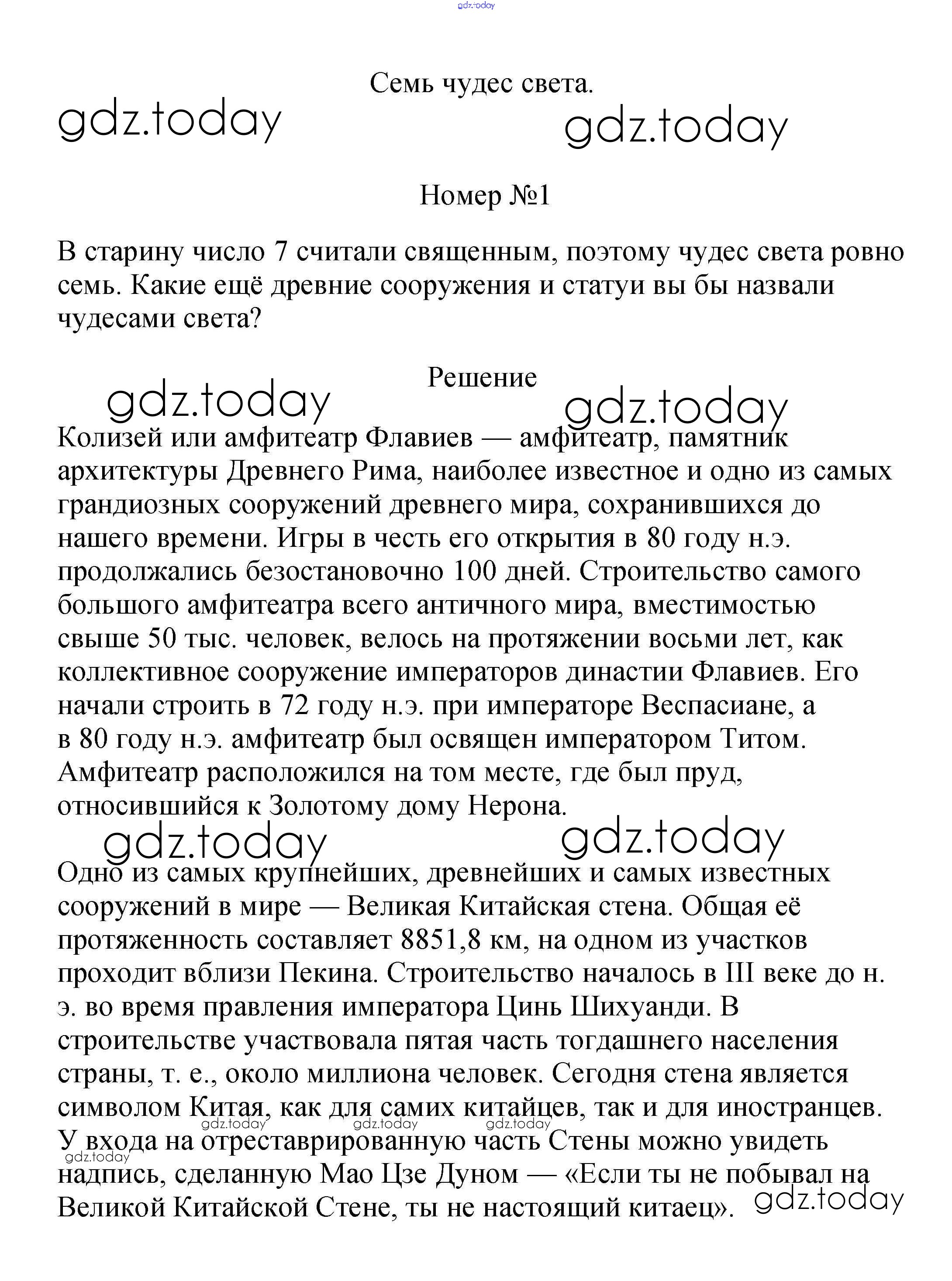 На страницах сайта gdz.today вы найдете учебный и вспомогательный материал, направленный на улучшения знаний школьной программы. ГДЗ - онлайн мир знаний Семь чудес света 1 Учебнику по Истории для 5 класса Вигасин, Годер Просвещение 2010