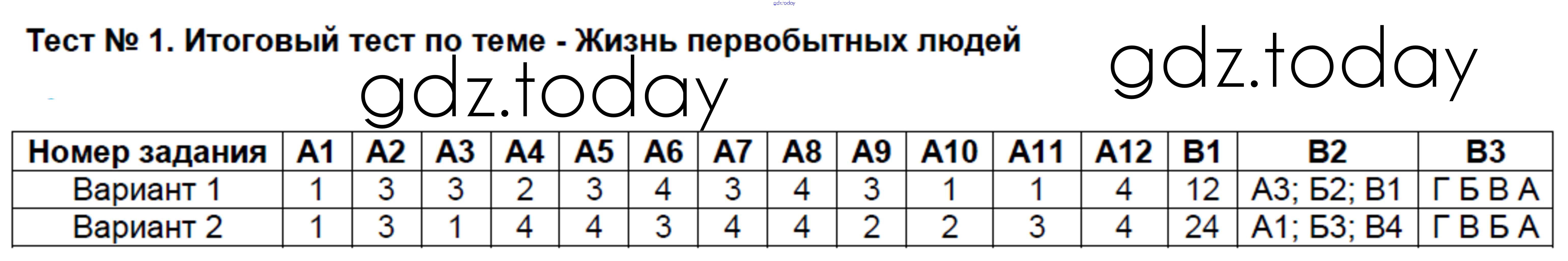 На страницах сайта gdz.today вы найдете учебный и вспомогательный материал, направленный на улучшения знаний школьной программы. ГДЗ - онлайн мир знаний Решение к тестам  Тест №1. Итоговый тест по теме - Жизнь первобытных людей Контрольно-измерительным материалам (КИМ) по Истории для 5 класса Волкова  ВАКО  2017