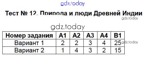 На страницах сайта gdz.today вы найдете учебный и вспомогательный материал, направленный на улучшения знаний школьной программы. ГДЗ - онлайн мир знаний Решение к тестам  Тест №12. Природа и люди Древней Индии Контрольно-измерительным материалам (КИМ) по Истории для 5 класса Волкова  ВАКО  2017