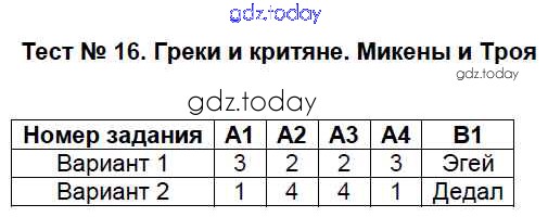 На страницах сайта gdz.today вы найдете учебный и вспомогательный материал, направленный на улучшения знаний школьной программы. ГДЗ - онлайн мир знаний Решение к тестам  Тест №16. Греки и критяне. Микены и Троя Контрольно-измерительным материалам (КИМ) по Истории для 5 класса Волкова  ВАКО  2017