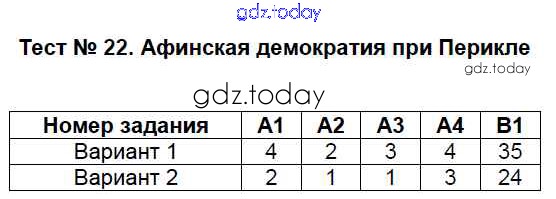 На страницах сайта gdz.today вы найдете учебный и вспомогательный материал, направленный на улучшения знаний школьной программы. ГДЗ - онлайн мир знаний Решение к тестам  Тест №22. Афинская демократия при Перикле Контрольно-измерительным материалам (КИМ) по Истории для 5 класса Волкова  ВАКО  2017