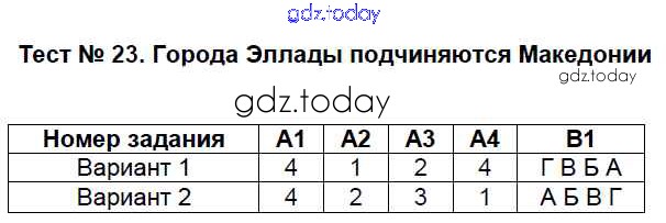 На страницах сайта gdz.today вы найдете учебный и вспомогательный материал, направленный на улучшения знаний школьной программы. ГДЗ - онлайн мир знаний Решение к тестам  Тест №23. Города Эллады подчиняются Македонии Контрольно-измерительным материалам (КИМ) по Истории для 5 класса Волкова  ВАКО  2017