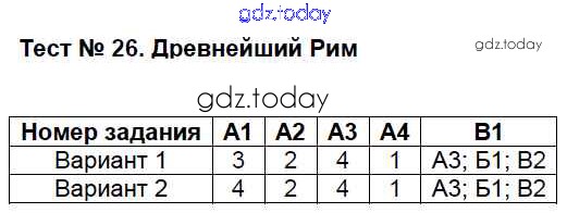 На страницах сайта gdz.today вы найдете учебный и вспомогательный материал, направленный на улучшения знаний школьной программы. ГДЗ - онлайн мир знаний Решение к тестам  Тест №26. Древнейший Рим Контрольно-измерительным материалам (КИМ) по Истории для 5 класса Волкова  ВАКО  2017