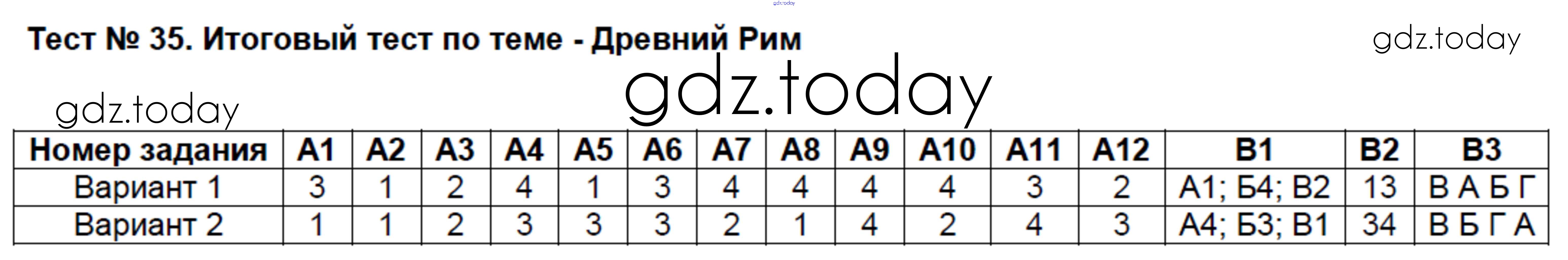 На страницах сайта gdz.today вы найдете учебный и вспомогательный материал, направленный на улучшения знаний школьной программы. ГДЗ - онлайн мир знаний Решение к тестам  Тест №35. Итоговый тест по теме - Древний Рим Контрольно-измерительным материалам (КИМ) по Истории для 5 класса Волкова  ВАКО  2017