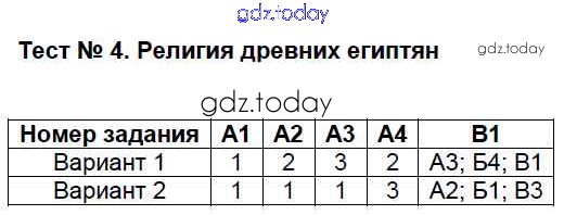 На страницах сайта gdz.today вы найдете учебный и вспомогательный материал, направленный на улучшения знаний школьной программы. ГДЗ - онлайн мир знаний Решение к тестам  Тест №4. Религия древних египтян Контрольно-измерительным материалам (КИМ) по Истории для 5 класса Волкова  ВАКО  2017