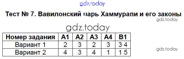 На страницах сайта gdz.today вы найдете учебный и вспомогательный материал, направленный на улучшения знаний школьной программы. ГДЗ - онлайн мир знаний Решение к тестам  Тест №7. Вавилонский царь Хаммурапи и его законы Контрольно-измерительным материалам (КИМ) по Истории для 5 класса Волкова  ВАКО  2017