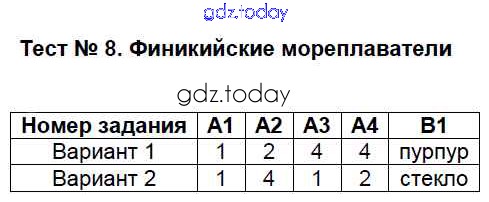 На страницах сайта gdz.today вы найдете учебный и вспомогательный материал, направленный на улучшения знаний школьной программы. ГДЗ - онлайн мир знаний Решение к тестам  Тест №8. Финикийские мореплаватели Контрольно-измерительным материалам (КИМ) по Истории для 5 класса Волкова  ВАКО  2017