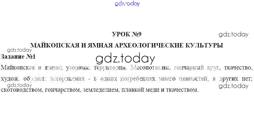 На страницах сайта gdz.today вы найдете учебный и вспомогательный материал, направленный на улучшения знаний школьной программы. ГДЗ - онлайн мир знаний Решение к уроку № 9. Майкопская и Ямная археологические культуры 1 Рабочей тетради по Кубановедению для 5 класса Трехбратов Традиция 2019