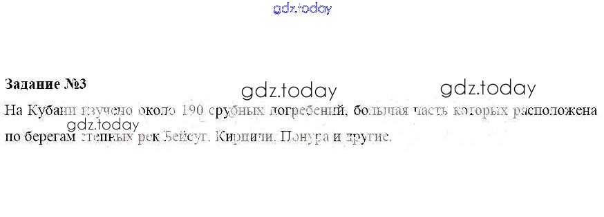 На страницах сайта gdz.today вы найдете учебный и вспомогательный материал, направленный на улучшения знаний школьной программы. ГДЗ - онлайн мир знаний Решение к уроку № 12. Северокавказкая, Катакомбная и Срубная археологические культуры 3 Рабочей тетради по Кубановедению для 5 класса Трехбратов Традиция 2019