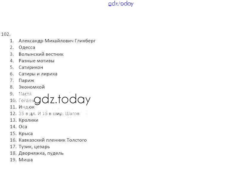 На страницах сайта gdz.today вы найдете учебный и вспомогательный материал, направленный на улучшения знаний школьной программы. ГДЗ - онлайн мир знаний Решение к упражнениям 102 Рабочей тетради по Литературе для 5 класса Ахмадуллина Просвещение 2016