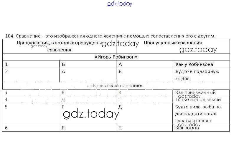 На страницах сайта gdz.today вы найдете учебный и вспомогательный материал, направленный на улучшения знаний школьной программы. ГДЗ - онлайн мир знаний Решение к упражнениям 104 Рабочей тетради по Литературе для 5 класса Ахмадуллина Просвещение 2016