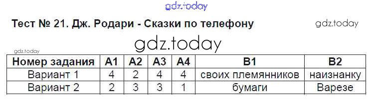 Ответы к Решение к тестам 21 Контрольно-измерительным материалам (КИМ) по Литературе для 5 класса Антонова ВАКО 2017