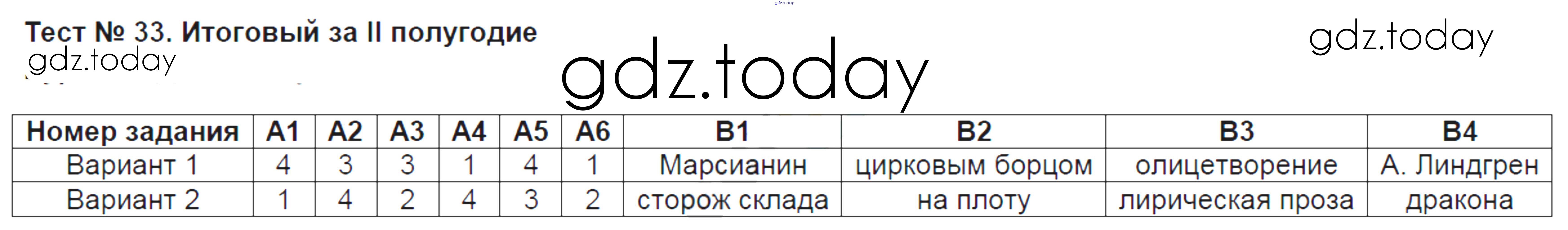 На страницах сайта gdz.today вы найдете учебный и вспомогательный материал, направленный на улучшения знаний школьной программы. ГДЗ - онлайн мир знаний Решение к тестам 33 Контрольно-измерительным материалам (КИМ) по Литературе для 5 класса Антонова ВАКО 2017
