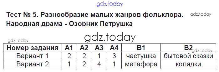 Ответы к Решение к тестам 5 Контрольно-измерительным материалам (КИМ) по Литературе для 5 класса Антонова ВАКО 2017