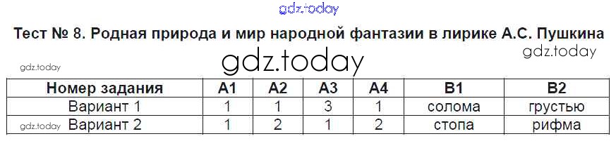 Ответы к Решение к тестам 8 Контрольно-измерительным материалам (КИМ) по Литературе для 5 класса Антонова ВАКО 2017