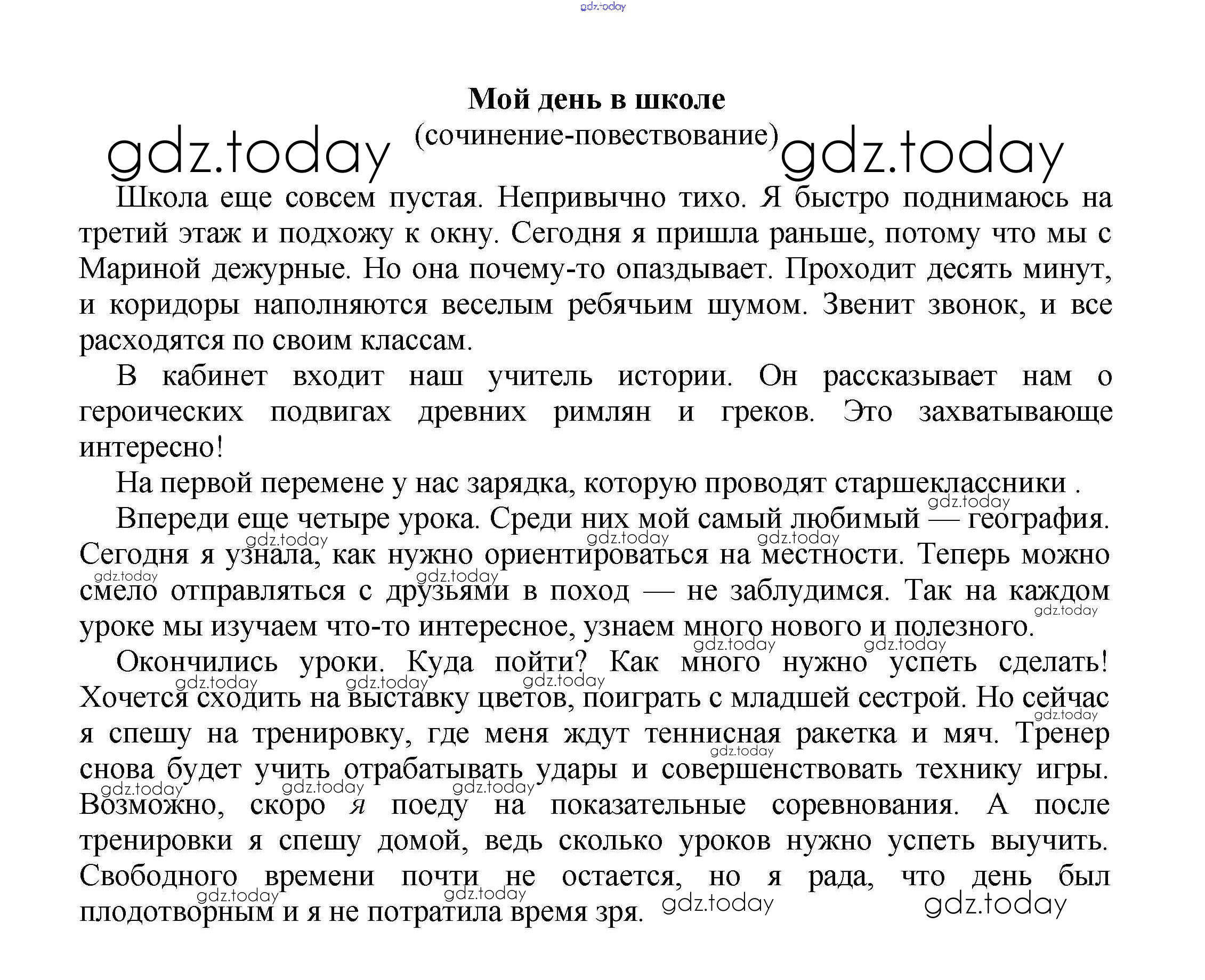 На страницах сайта gdz.today вы найдете учебный и вспомогательный материал, направленный на улучшения знаний школьной программы. ГДЗ - онлайн мир знаний Сочинения на свободную тему 5 класс Мой день в школе (сочинение-повествование) Сочинениям по Литературе для 5-10 класса Белик, Музычук Баро-Пресс 2017