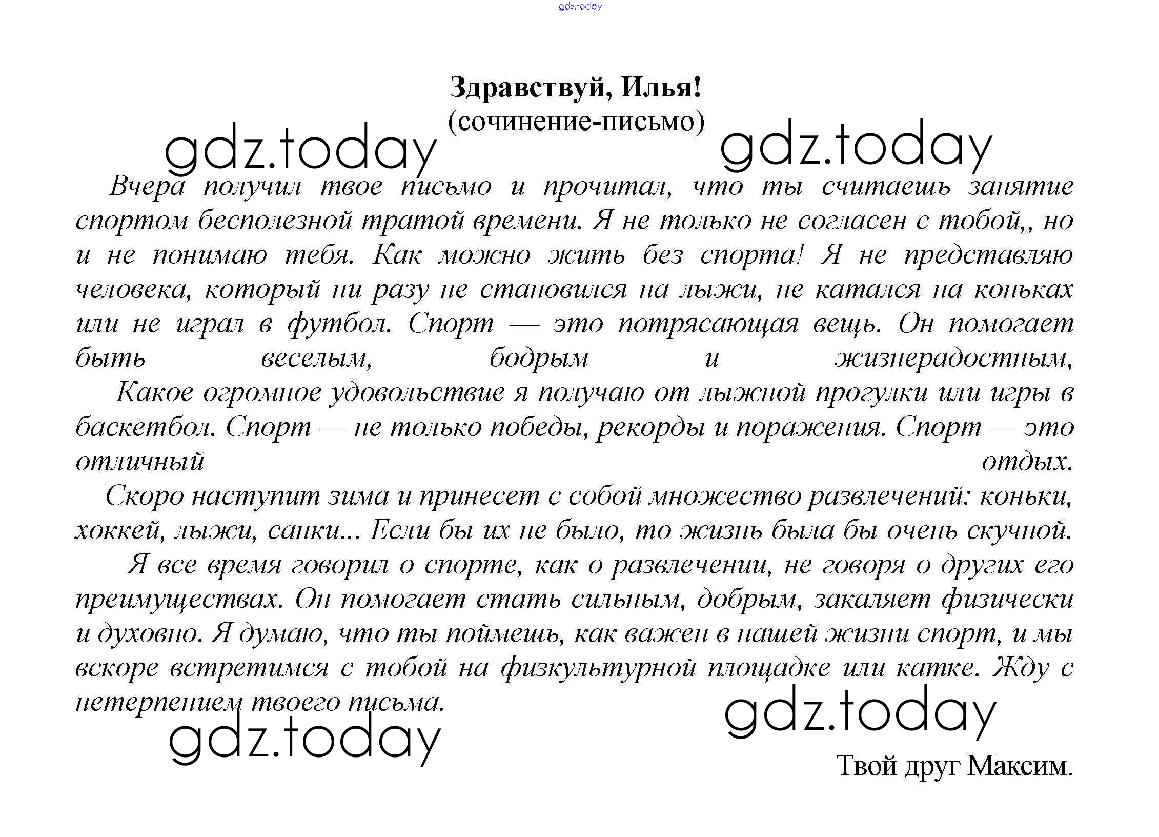 На страницах сайта gdz.today вы найдете учебный и вспомогательный материал, направленный на улучшения знаний школьной программы. ГДЗ - онлайн мир знаний Сочинения на свободную тему 5 класс Здравствуй, Илья! (сочинение-письмо) Сочинениям по Литературе для 5-10 класса Белик, Музычук Баро-Пресс 2017