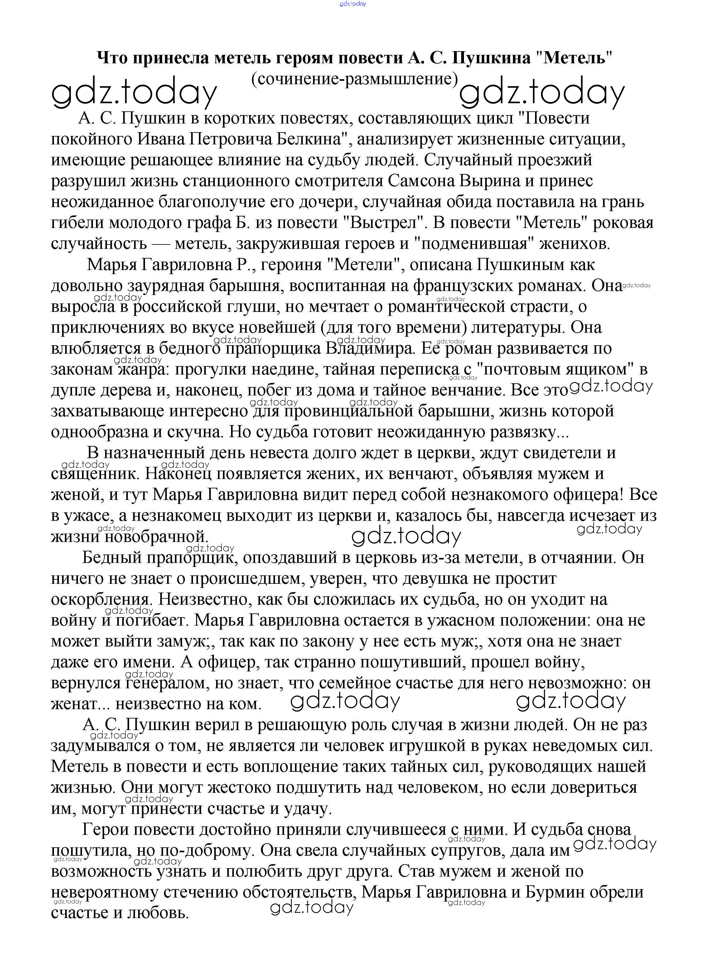 На страницах сайта gdz.today вы найдете учебный и вспомогательный материал, направленный на улучшения знаний школьной программы. ГДЗ - онлайн мир знаний Сочинения по русской литературе 6 класс Что принесла метель героям повести А. С. Пушкина "Метель" (сочинение-размышление) Сочинениям по Литературе для 5-10 класса Белик, Музычук Баро-Пресс 2017