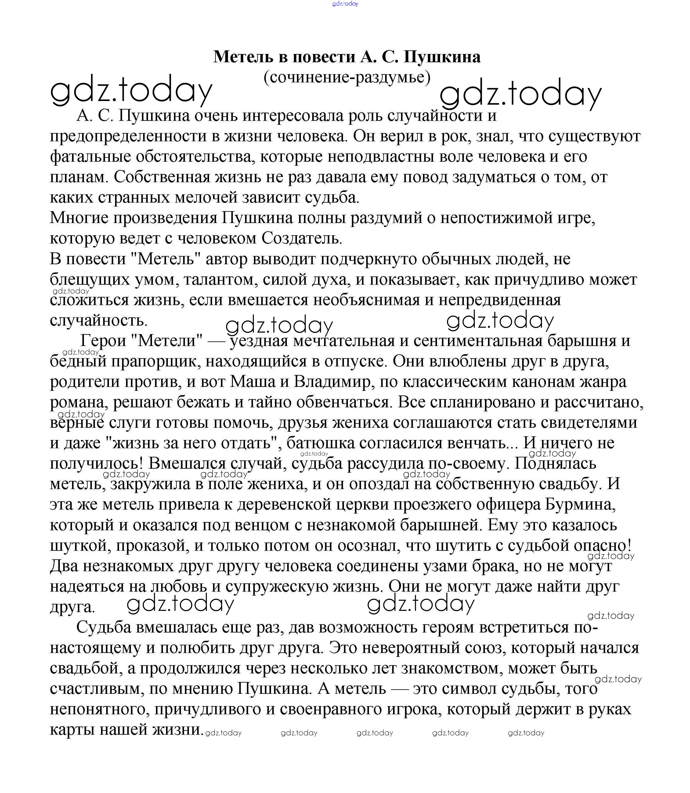 На страницах сайта gdz.today вы найдете учебный и вспомогательный материал, направленный на улучшения знаний школьной программы. ГДЗ - онлайн мир знаний Сочинения по русской литературе 6 класс Метель в повести А. С. Пушкина (сочинение-раздумье) Сочинениям по Литературе для 5-10 класса Белик, Музычук Баро-Пресс 2017