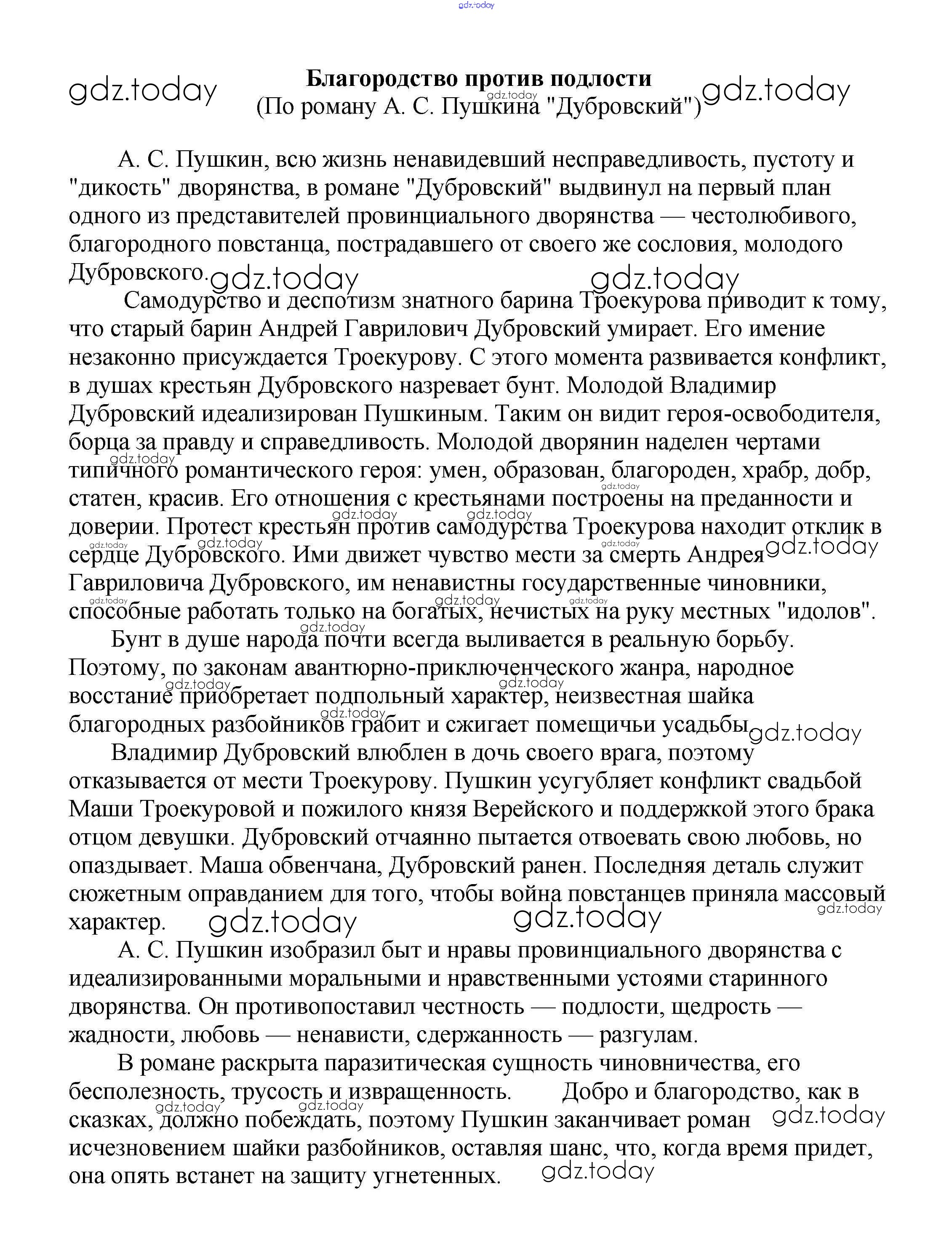 На страницах сайта gdz.today вы найдете учебный и вспомогательный материал, направленный на улучшения знаний школьной программы. ГДЗ - онлайн мир знаний Сочинения по русской литературе 6 класс Благородство против подлости (По роману А. С. Пушкина "Дубровский") Сочинениям по Литературе для 5-10 класса Белик, Музычук Баро-Пресс 2017