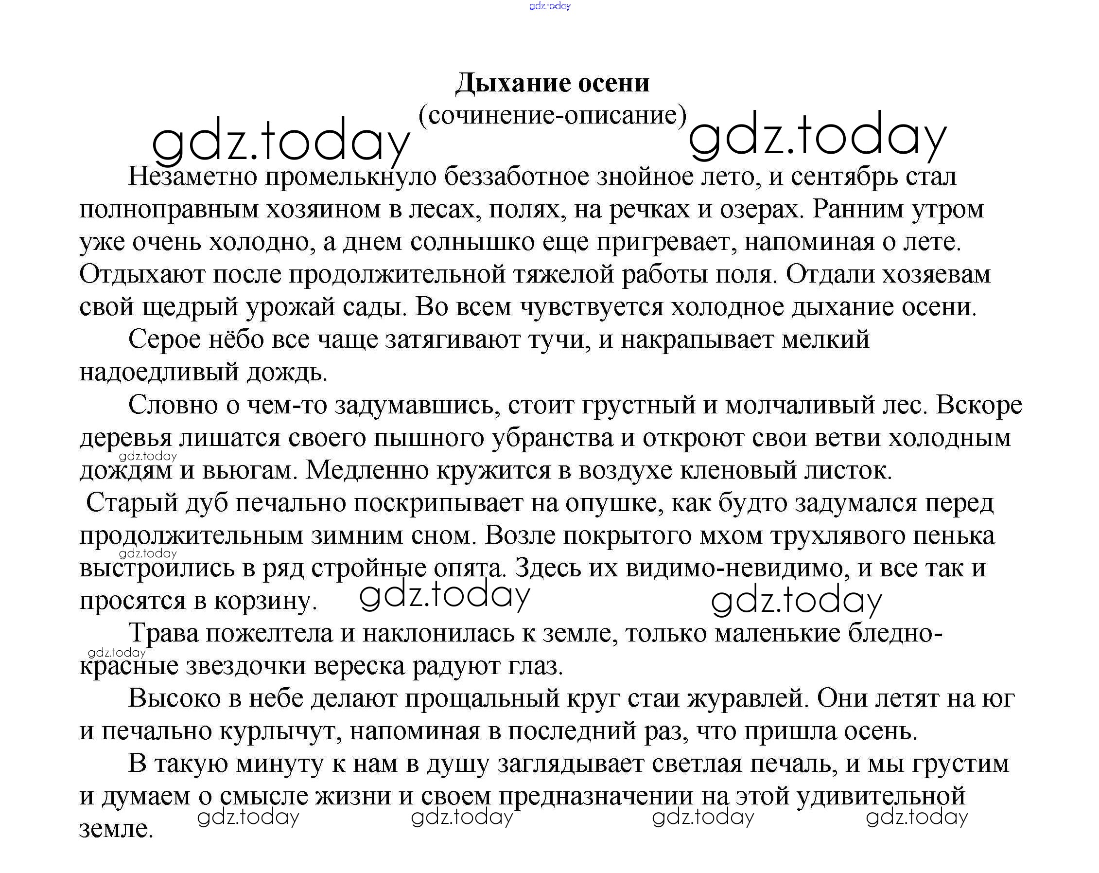 На страницах сайта gdz.today вы найдете учебный и вспомогательный материал, направленный на улучшения знаний школьной программы. ГДЗ - онлайн мир знаний Сочинения на свободную тему 6 класс Дыхание осени (сочинение-описание) Сочинениям по Литературе для 5-10 класса Белик, Музычук Баро-Пресс 2017